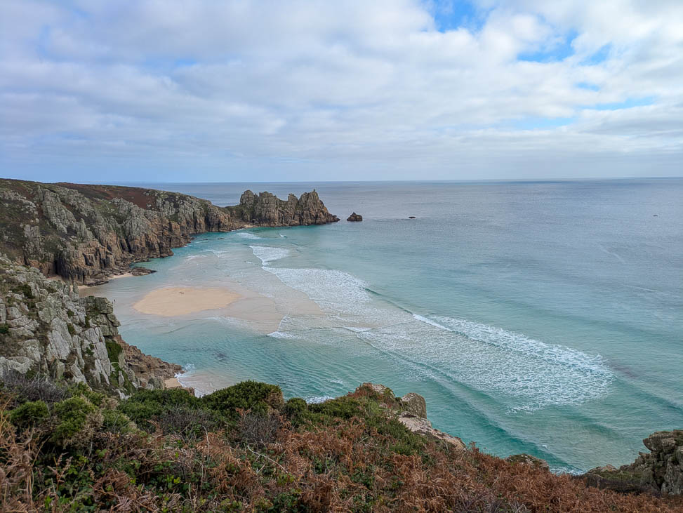 The first day of walking a tiny bit of the South West Coast Path. Mousehole to Porthcurno was 9 miles and 2,111′ of ascent. Phew! The view down to the bays just before Portcurno with… Mousehole to Portcurno (09 Oct 2025)